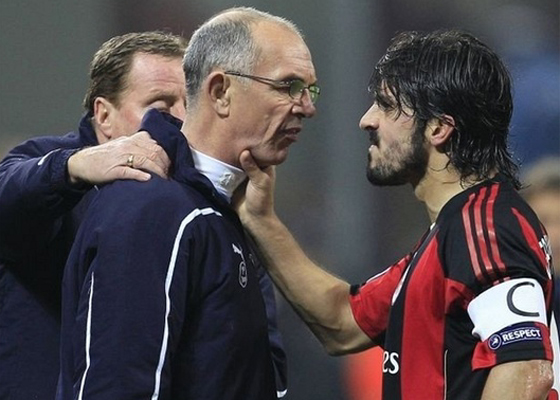 O volante Gennaro Gattuso teve um dia infeliz nesta terça-feira, durante e depois do jogo do Milan pelas oitavas de final da Liga dos Campeões. A equipe italiana perdeu por 1 a 0 para o Tottenham, e o italiano de um verdadeiro "piti" dentro de campo. Ele encarou jogadores e integrantes da comissão técnica do time adversário, distribuiu carrinhos, socou o chão e saiu de campo como vilão. Veja algumas cenas protagonizadas pelo nervosinho: