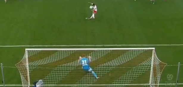 Soriano pegou a bola confiante, colocou na marca da cal, deu uma olhadinha para o juiz e correu. A primeira impressão é de que o jogador pegou mal e mandou a bola longe. Mas na imagem seguinte, atrás do gol, você pode perceber que a bola foi muito, mas muito longe da meta do goleiro Königshofer.