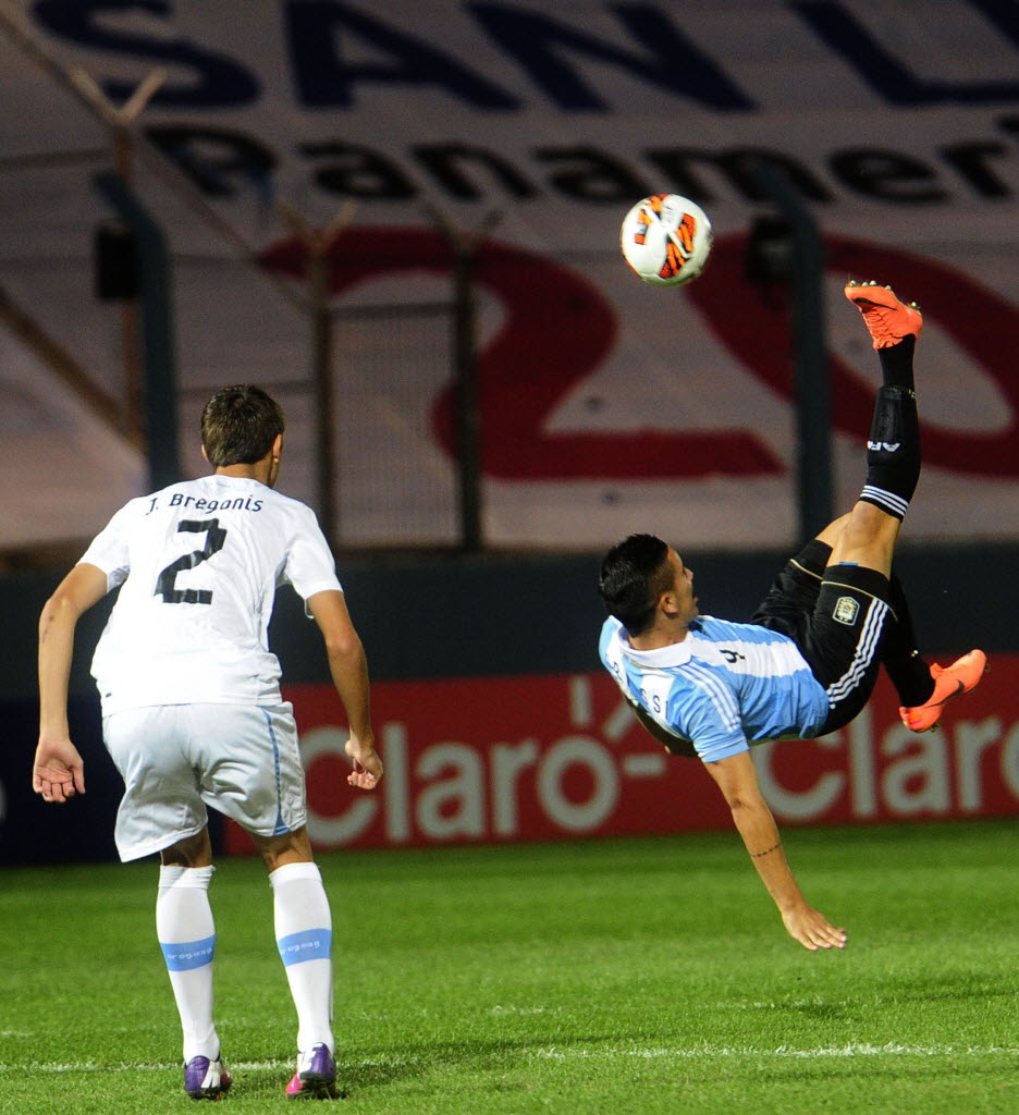 Argentino arrisca bicicleta de fora da área e marca golaço