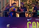 Em outro momento, Neymar caiu na folia durante festejo do Barcelona e brincou com o amigo Adriano. O atacante deu uma voadora no jogador, e apareceu também falando em espanhol, para o público que compareceu para comemorar o título com os jogadores do clube catalão.