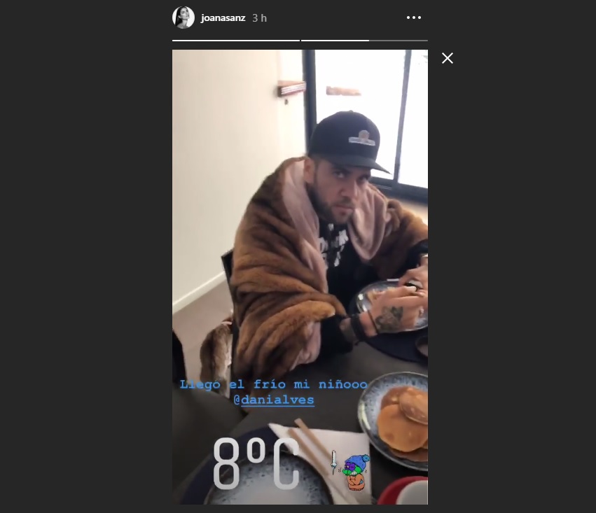 Acordar cedo não é tarefa fácil, principalmente quando o clima contribui para continuar deitado debaixo do edredom. No entanto, não foi bem o que aconteceu com Daniel Alves. O lateral foi flagrado pela mulher, a modelo espanhola Joana Sanz, tomando café de manhã, enrolado em um cobertor e com aquele famoso mau-humor matinal.