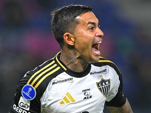 Em um desenho de Diego Frank, Ronaldinho se transformou no famoso Gênio da Lâmpada, de Aladdin. Com a coloração azul, ele sai de uma bola de futebol.