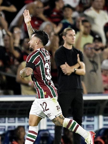 "Parabéns, Ludmilla! Que Deus te abençoe, nega. Sou seu fã! Curte aí!", escreveu o jogador. Na foto, os dois aparecem lado a lado; ela segura uma camisa do Flamengo.