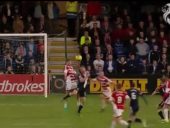 Celtic's Leigh Griffiths gets annoyed at missing header, kicks advertising hoarding…Gets stuck!...